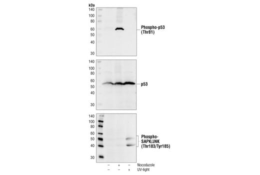 Phospho-p53 (Thr81) Antibody detects endogenous levels of p53 only when phosphorylated at threonine 81.