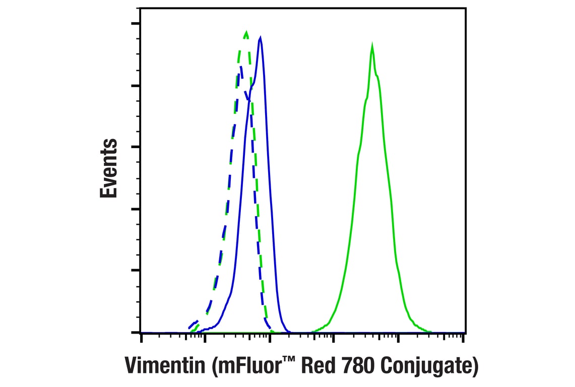 Vimentin (D21H3) Rabbit Monoclonal Antibody (mFluor™ Red 780 Conjugate) detects endogenous levels of total vimentin protein.