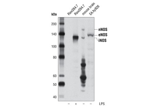 NOS (pan) Antibody detects endogenous levels of total eNOS, iNOS and nNOS protein.