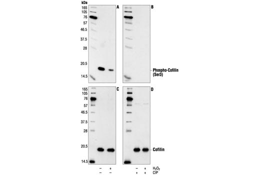 Phospho-Cofilin (Ser3) Antibody detects endogenous levels of cofilin only when phosphorylated at serine 3. This antibody may cross-react with phosphorylated cofilin 2, the muscle isoform.