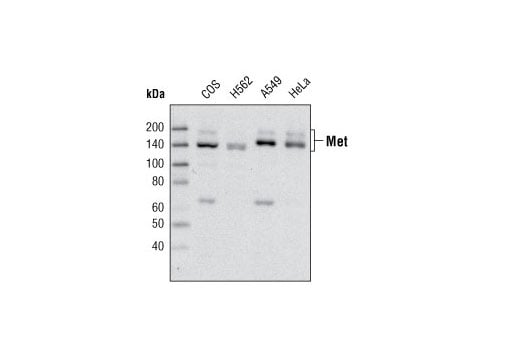Met Antibody detects endogenous levels of total Met protein. This antibody does not cross-react with other related proteins.