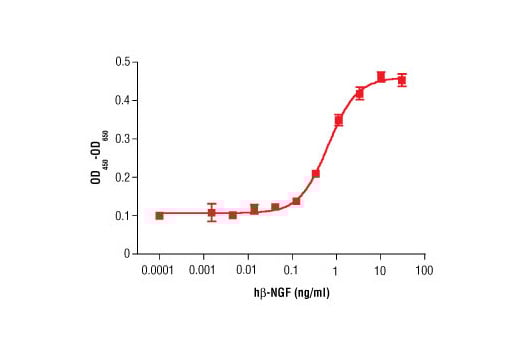 Recombinant human β-NGF (hβ-NGF) Ser122-Ala241 (Accession #NP_002497) was expressed in human 293 cells at Cell Signaling Technology.