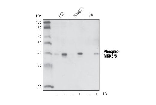 | MW (kDa) | 40 P-MKK3, 41 P-MKK6 |