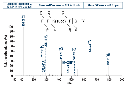7. Detect PTMScan® Control Peptides Succinyl-Lysine in the LCMS data file.